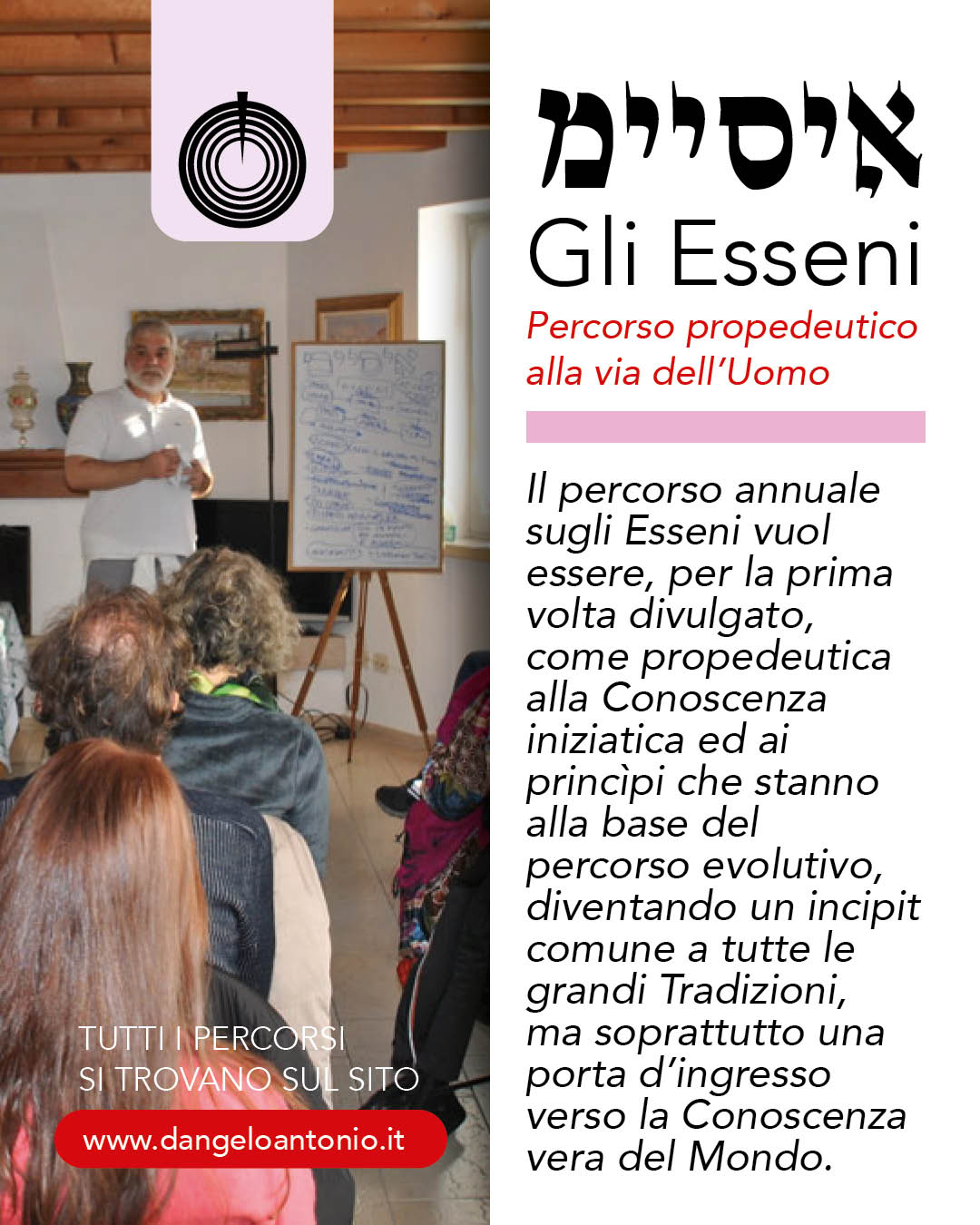 Il percorso annuale sugli Esseni vuol essere, per la prima volta divulgato come propedeutica alla Conoscenza iniziatica ed ai princìpi che stanno alla base delle loro pratiche, diventando un incipit comune a tutte le grandi Tradizioni, ma soprattutto una porta d'ingresso verso la Conoscenza vera del Mondo.