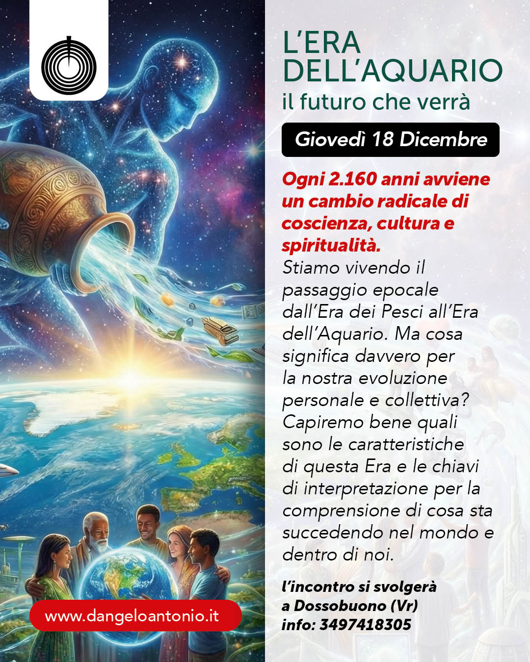 Stiamo vivendo il passaggio epocale dall’Era dei Pesci all’Era dell’Aquario. Ma cosa significa davvero per la nostra evoluzione personale e collettiva? Capiremo bene quali sono le caratteristiche di questa Era e le chiavi di interpretazione per la comprensione di cosa sta succedendo nel mondo e dentro di noi.